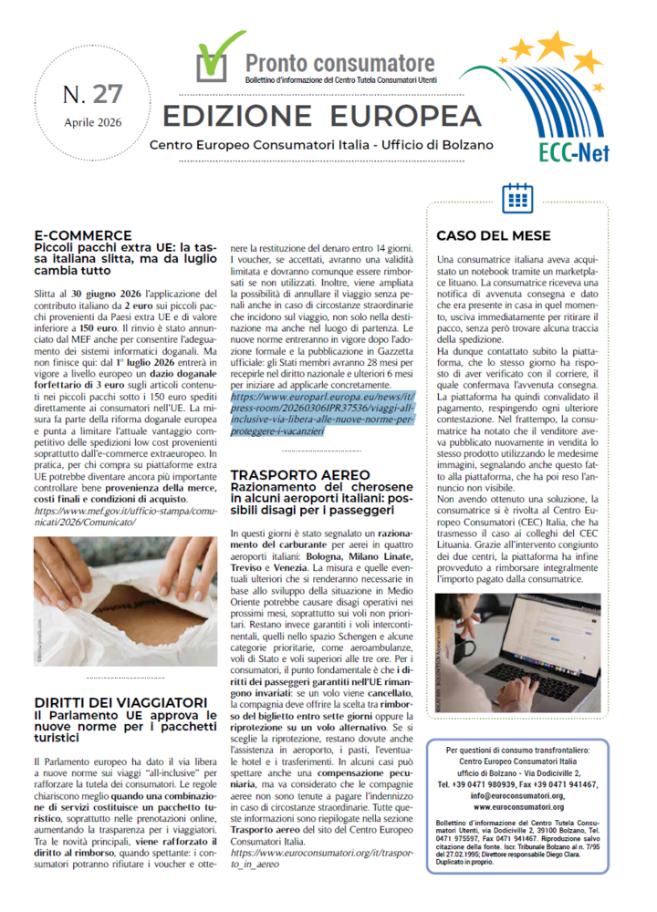 I consigli e le novità in arrivo spiegati dal Centro Europeo Consumatori (CEC) Italia e dal Centro Tutela Consumatori Utenti (CTCU)
