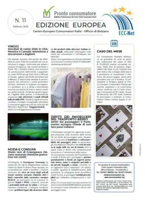 Supplemento all'edizione del Pronto Consumatore (Bollettino d'informazione del Centro Tutela Consumatori Utenti di Bolzano) n. 11 - redazione: Centro Europeo Consumatori, ufficio di Bolzano